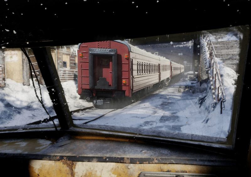 Die Wagen gehören zur Zuggarnitur Krasnaja Strela des russischen Herstellers TT-Modell. Für die virtuelle Umgebung wurde ein Screenshot des Gamers X-Nergal-X aus dem Computerspiel "Metro Exodus" verwendet. |