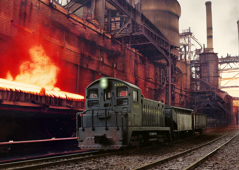 Die Lok des Typs SN 1200 der Pennsylvania Railroad ist vom tschechischen Hersteller mtb, die Wagen sind von Lok-N-Roll aus Leipzig. Die virtuelle Umgebung wurde mit der KI-Engine Midjourney erstellt. |